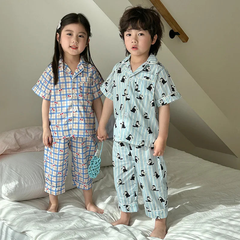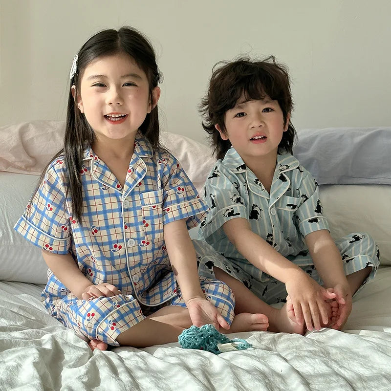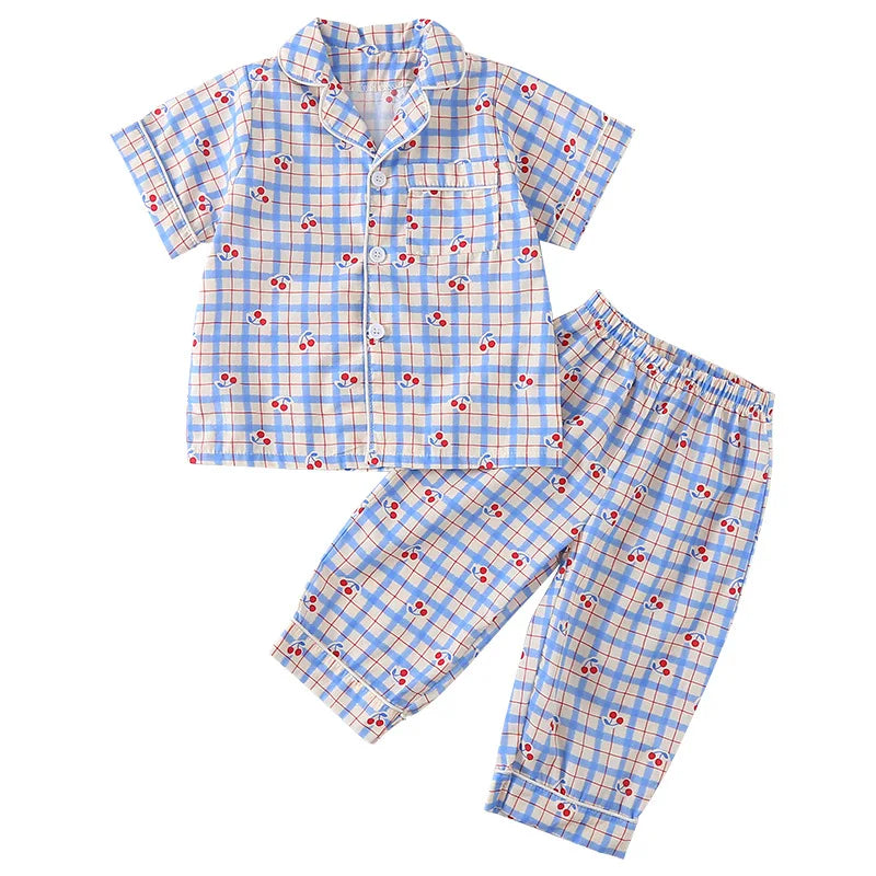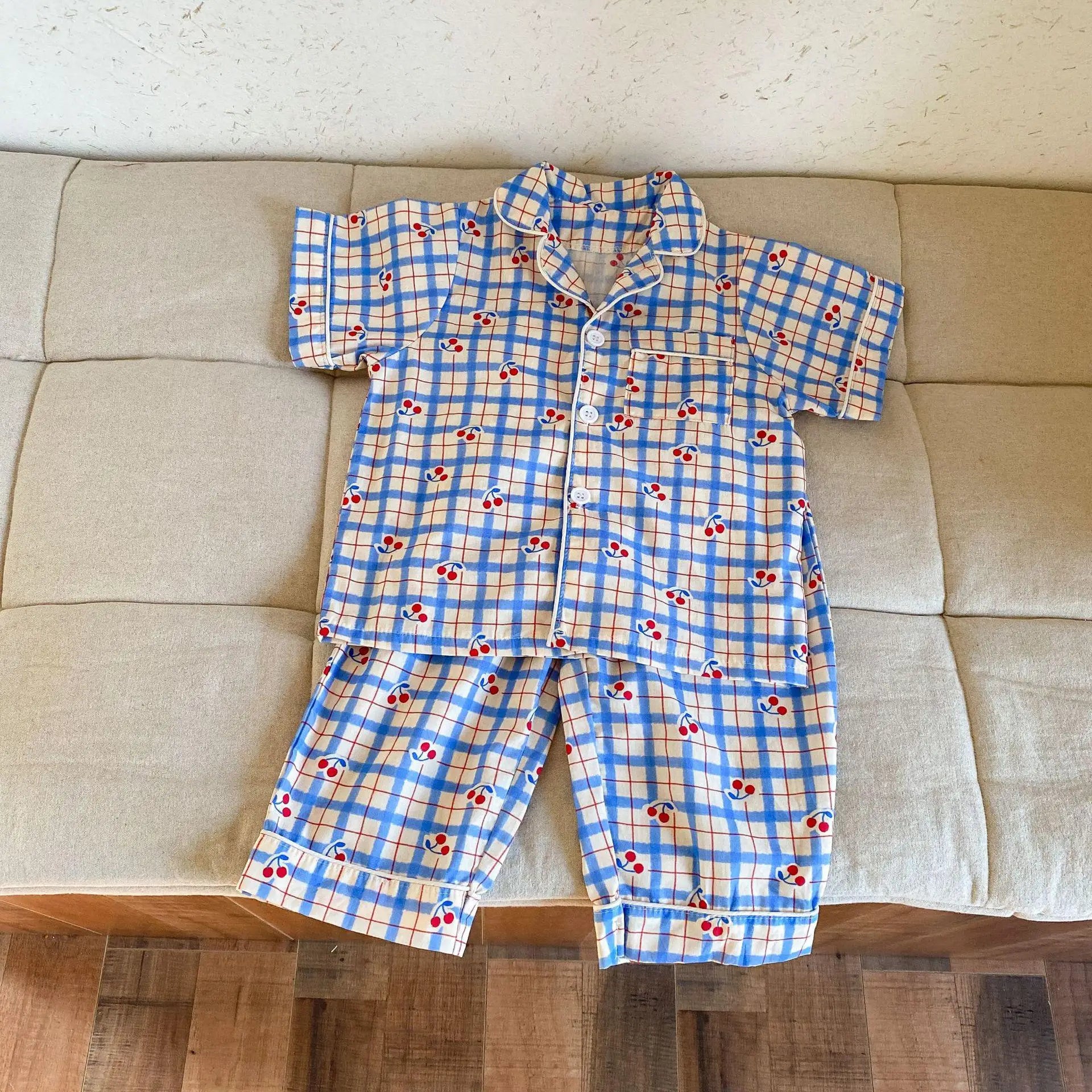 1-10 Years Old Brother Sister Clothes Girls Checkered Cherry Family Suit Boys T Shirt + Shorts 2PCS Suit Children Clothing Set